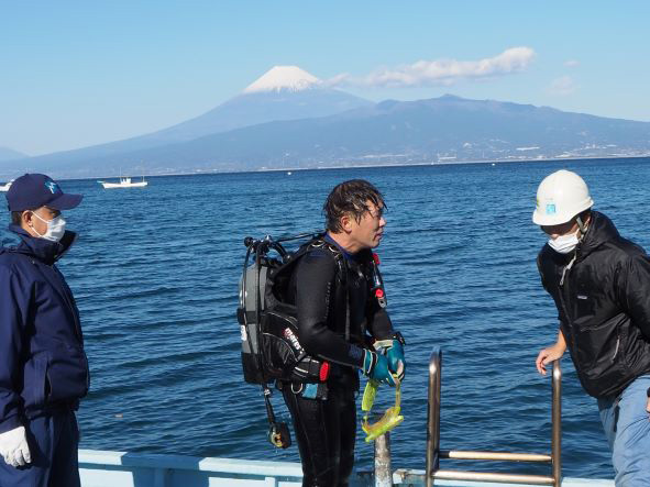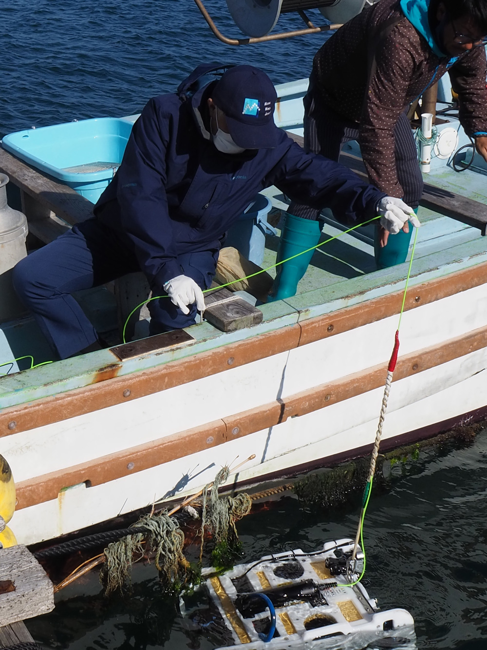当日の活動は、アマモマットという種床を作り、それを潜水作業で設置してきました。当社は水中ドローンを投入し、水中作業の撮影を行ってきました。
