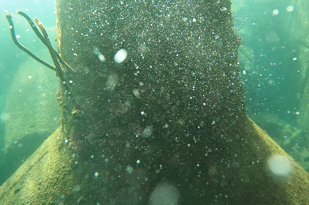 サンビーチ周辺の観察が終わった後は沖合堤防の水中ドローン観察を実施。こちらは透明度が高く、魚類がとても豊かで、藻場の観察のはずがついつい魚たちに目が奪われてしまいました。