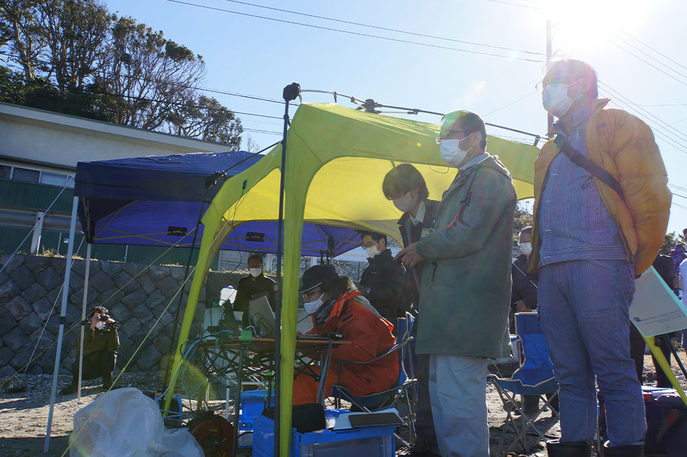 1月12日(水)に神奈川県立海洋科学高等学校と横須賀市議会議員、報道機関4社に小型ASVの自律航行と水中カメラによるウニ撮影を公開し、本実証試験「小型ASVを用いたウニ密度マップによる効率的な駆除方法の検討」について紹介しました。