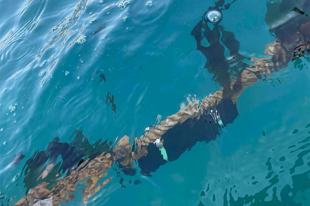 静岡県の田子の浦漁業協同組合では、近年ワカメ養殖を試みているのですが、やはり食害が見られることから、当社の水中用タイムラプスカメラを用いた食害観察を2020年度から青壮年部のみなさんと一緒に始めました。今年度で2回目となる撮影では、昨年度の反省を踏まえ、施設設置当初から撮影開始できるよう準備しました(昨年度は撮影が遅れてしまい、すでに食害後の状況でした)。