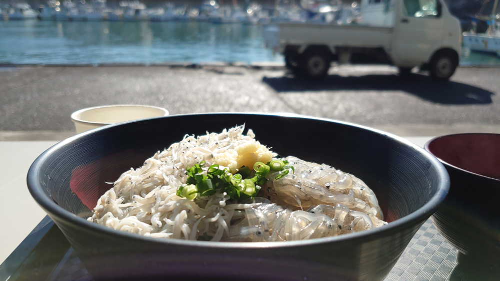 漁協食堂のしらす丼(写真は生シラスと釜揚げシラスのハーフ丼