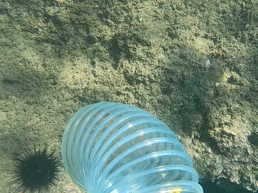 2023年度中に複数回の採取試験を行い、その都度改良を加えて、スラープガン方式の技術開発については一応の目途が付きました。最終的な採取試験では、岩礁の上に生息するウニを1時間で30個体採取するまでになりました。しかしながら、ダイバーが潜水で駆除・採取する際の時間当たりの量から比べると非常に少ない量ですので、スラープガンとキャニスターを装備した水中ドローンの操作性や採取スピードの向上は今後も課題です。また、採取試験をしている海域では、岩陰や窪み、岩に穴を掘って潜むウニも多く、スラープガンでの吸引では採取することができないため、このようなウニに対する採取方法の課題も残りました。