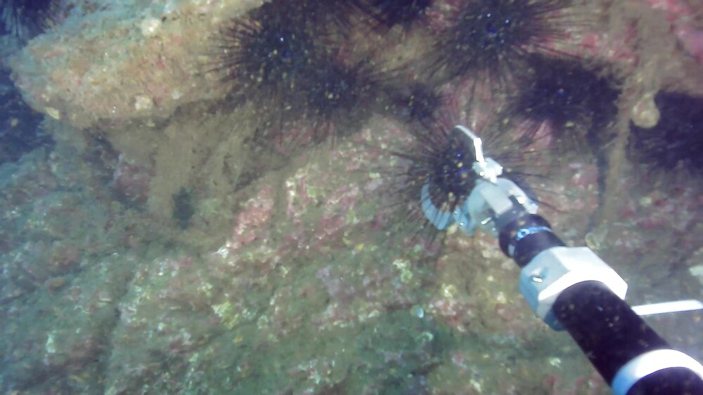 図5 三つ爪タイプのロボットアームでガンガゼを掴む様子