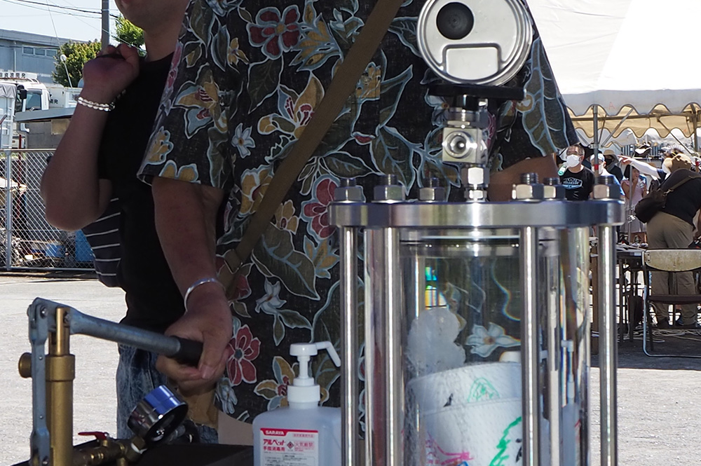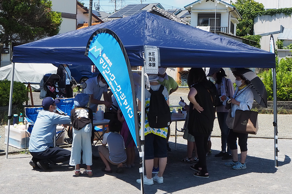 当社は会場設営などの黒子的なお手伝いに加えて、「水圧実験  体験イベント」ということでブースを設けさせていただき、鉄板メニュー(!?)のカップ麺の容器が水圧によって小さくなる実験を皆さんに体験していただきました。お子さんのみならず、大人の方にも楽しんでいただけたようで良かったです。たくさんの方々に立ち寄っていただき、ありがとうございました。